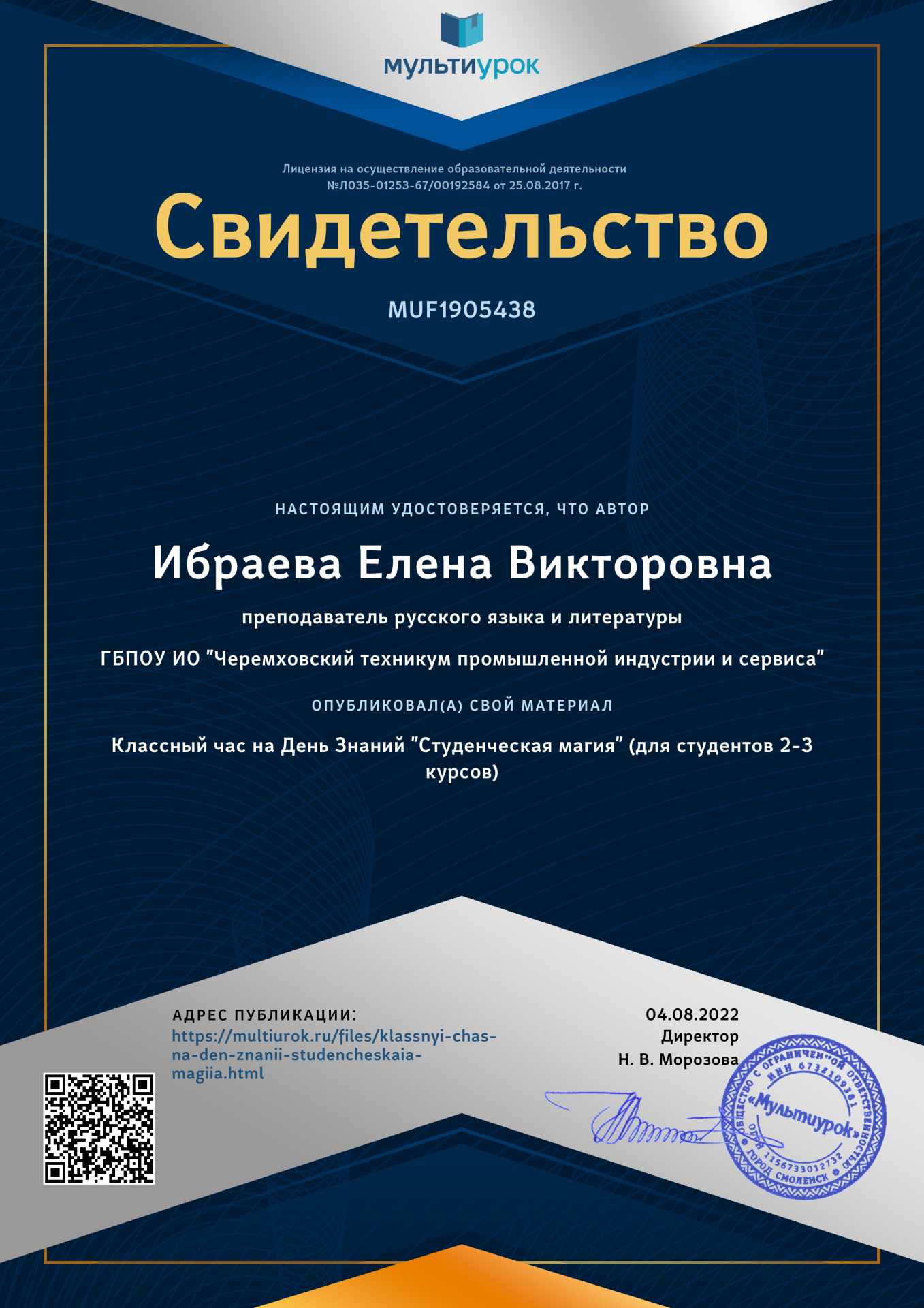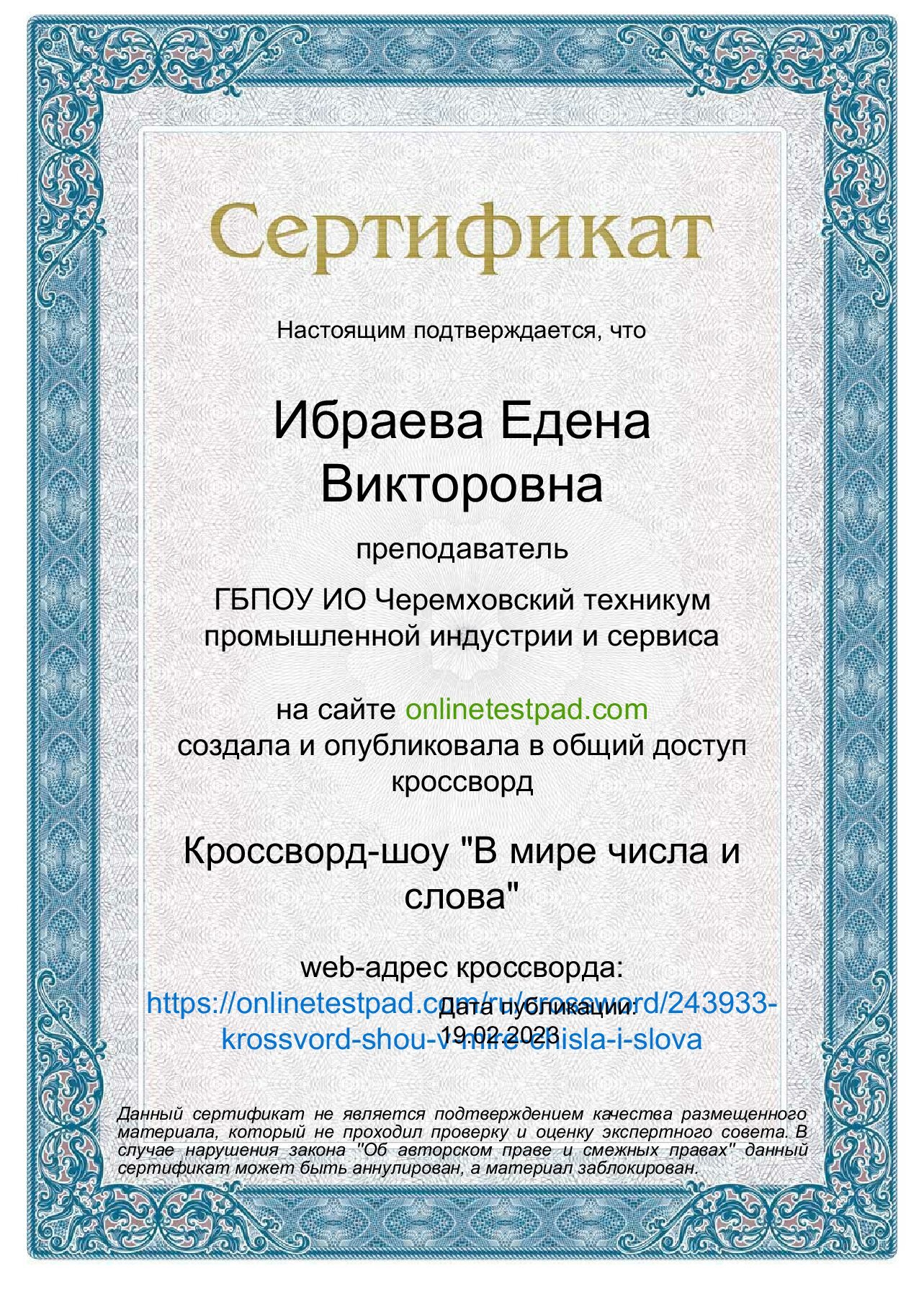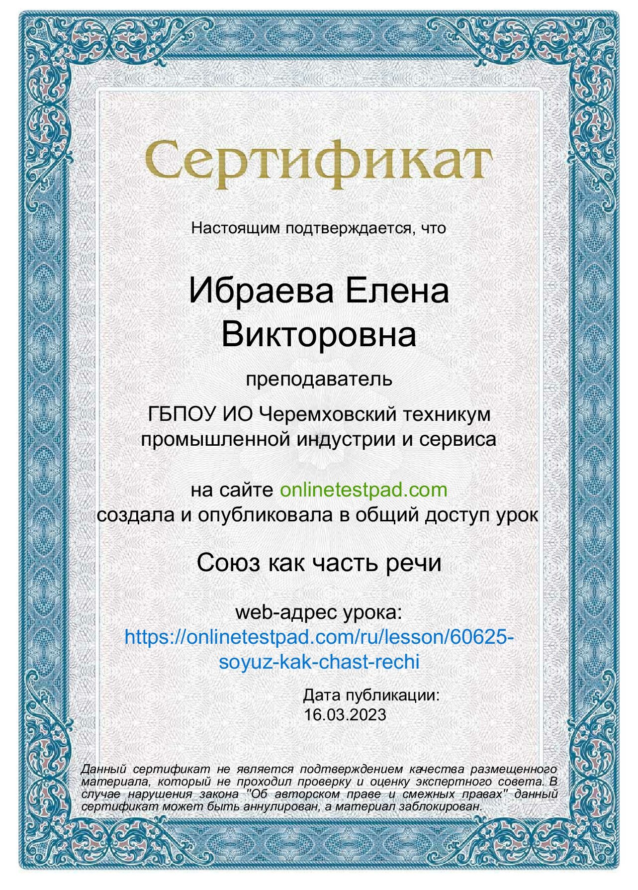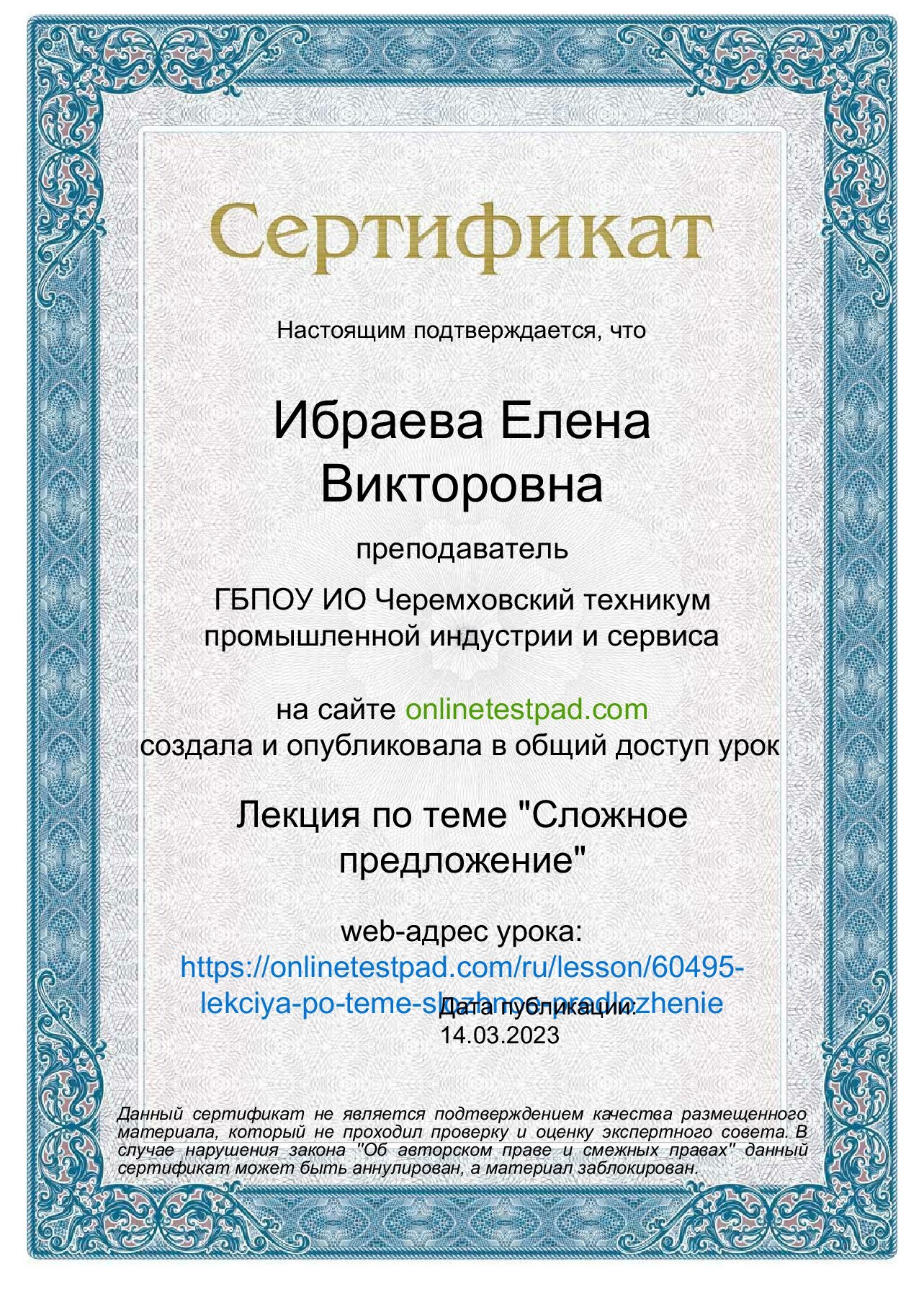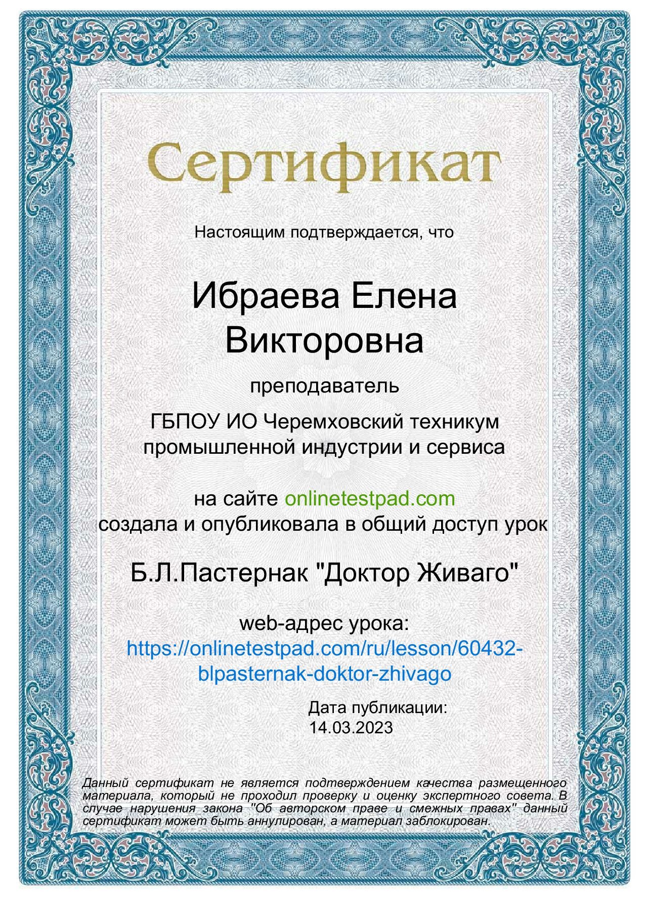 Достижения преподавателя